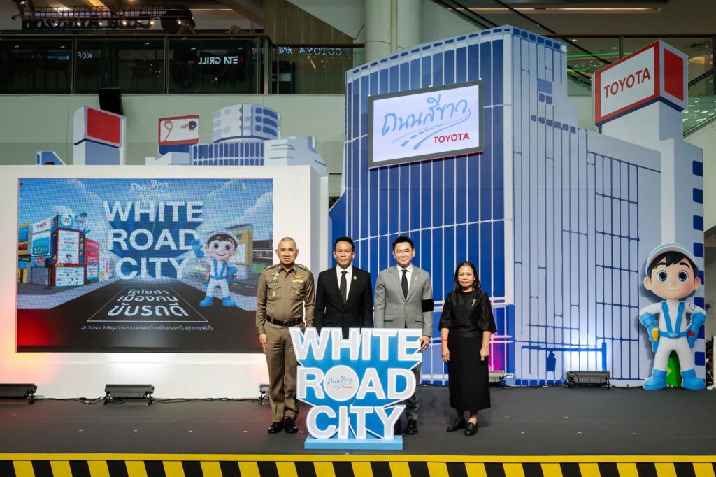 นายสุรภูมิ อุดมวงศ์ รองกรรมการผู้จัดการใหญ่ บริษัท โตโยต้ามอเตอร์ ประเทศไทย จำกัด นายสรพงศ์ ไพฑูรย์พงษ์ อธิบดีกรมการขนส่งทางบก พล.ต.ท.สมประสงค์ เย็นท้วม ผู้ช่วยผู้บัญชาการตำรวจแห่งชาติและนางเครือฟ้า บุญดวง ผู้อำนวยการกองนโยบายและแผนงาน สำนักการจราจรและขนส่ง กรุงเทพมหานคร พร้อมด้วยตัวแทนจากหน่วยงานพันธมิตรภาครัฐ ภาคเอกชน ร่วมเป็นเกียรติในการเปิดนิทรรศการ “White Road City เมืองคนขับดีกับโตโยต้า ถนนสีขาว” เพื่อมุ่งสู่เป้าหมายการลดอุบัติเหตุทางถนนในประเทศไทยอย่างเป็นรูปธรรม ณ ซีคอนสแควร์ ฮอลล์ ชั้น 1 ศูนย์การค้าซีคอนสแควร์ ศรีนครินทร์ เมื่อวันที่ 4 กุมภาพันธ์ 2569
